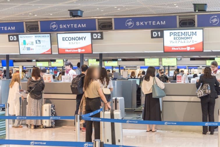 今回利用した便は「SL301」。機材は「Airbus A330-300」となります。成田空港を10:40に出発し、バンコクのドンムアン空港に15:15に到着するフライトです。朝ゆっくりと移動できて、到着当日の夕方から観光できるのでオススメです!空港に出発時刻の2時間前に到着し、成田空港第1ターミナル北ウイングのチェックインカウンターへ。平日のためか、数分並んだだけですぐに終了しました。ハイシーズンや連休の場合は、並ぶことが予想されるので、2~3時間以上前には空港に着いておくと安心です。