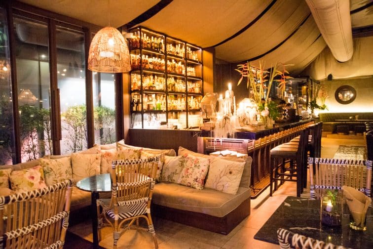 静かで、涼しい場所で過ごしたいという方は、店内中央の広くて豪華な室内席を利用しましょう。室内にもバーカウンターがあります。屋外の南国風のデザインとは異なり、どこかシックで高級クラブのような内装となっています。10名以上のグループ利用の場合は、席を予約しておくと確実です。