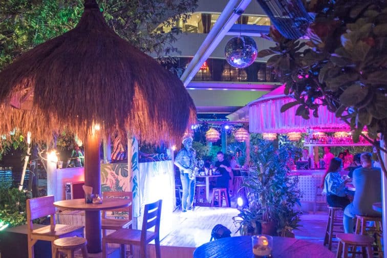 店内へ進むと、生演奏が聞こえてきました。タイのあるあるでお馴染みの「洋楽ヒットソングのコピーバンド」ではなく、プロのサックスプレーヤーによる演奏です。アロハシャツを着たジャズプレーヤーは、ランダムに流れるビートに合わせて、心地よいサックスの音色を奏でていました。ステージの内容は、日ごとに変わります。DJイベントの時もあれば、バンド演奏の時もあります。行く前に情報を知りたいという方は、事前に公式HPをチェックしておきましょう。