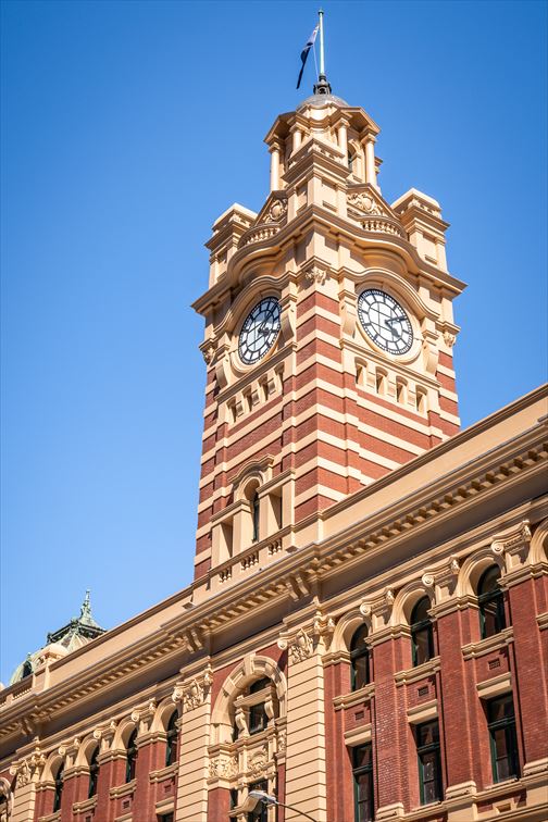 メルボルン「フリンダース・ストリート駅(Flinders Street Station)の時計台」とトラム