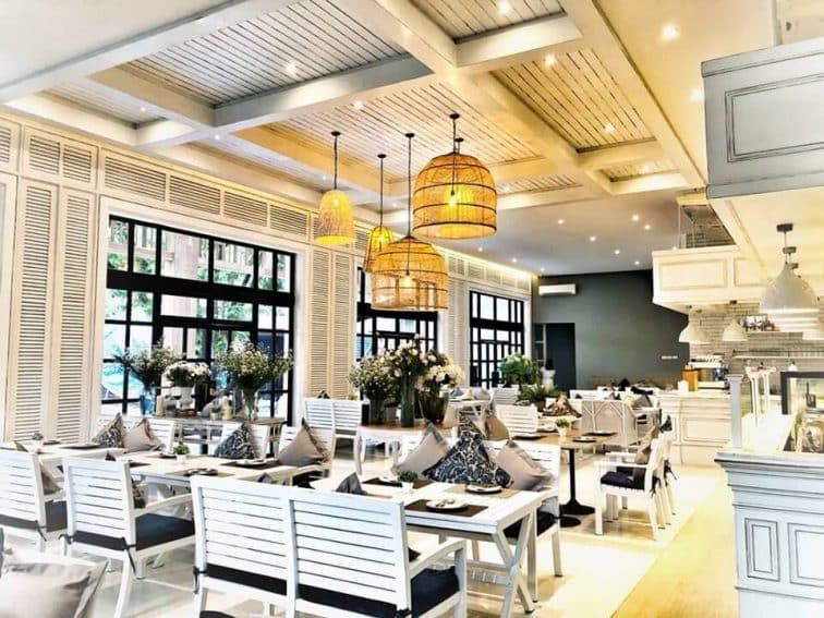 南国らしい濃い黄緑色の植物が多く茂っている広い庭に、トンとたたずむお洒落な一軒家レストランです。白×青を基調とした、ヨーロッパを感じられるような外観と内装。「良心的な価格で美味しい」と現地のタイ人だけでなく、バンコク在住の日本人女性にも圧倒的な人気を誇っています。