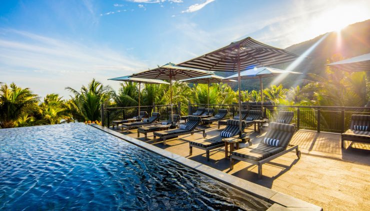ダナン市内には5つ星のリゾートホテルが数多くありますが、特に家族連れや女性に人気が高いホテルは「インターコンチネンタル ダナン サン ペニンシュラ リゾート」です。ダナンの観光名所のひとつでもある、モンキーマウンテンのヒルサイドに位置し、全長700mものプライベートビーチを持っています。