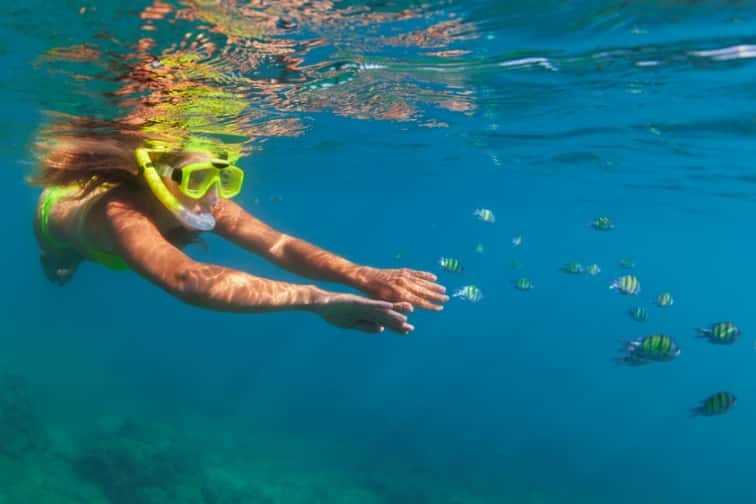 シュノーケリングをする女性