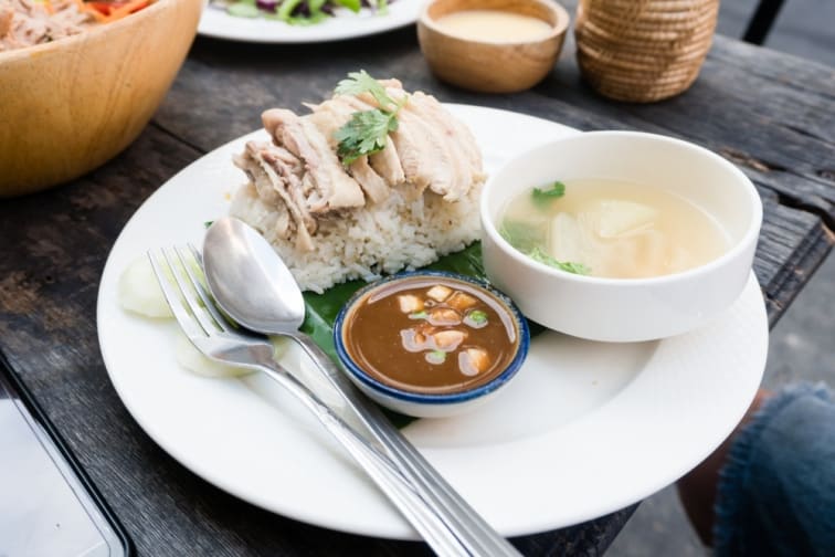 3. 香り高いライスに茹で鶏を載せた「海南チキンライス」