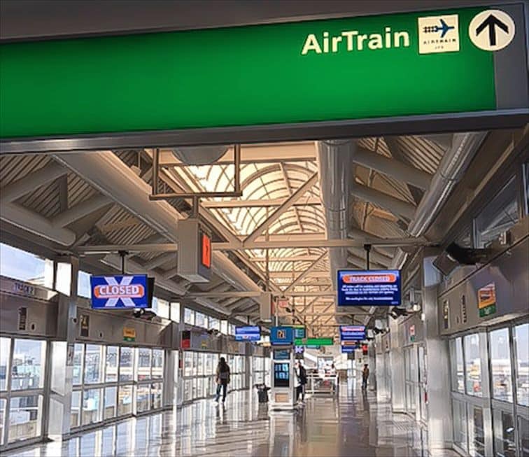 時間に余裕があり、少しでも節約したい人には地下鉄が便利。空港のゲートを出ると、Air Train(エアトレイン)と書かれた緑の看板があるので、その矢印に従って進みましょう。エアトレインとは空港から地下鉄までを結ぶ高架鉄道のことで、24時間運行しています。
