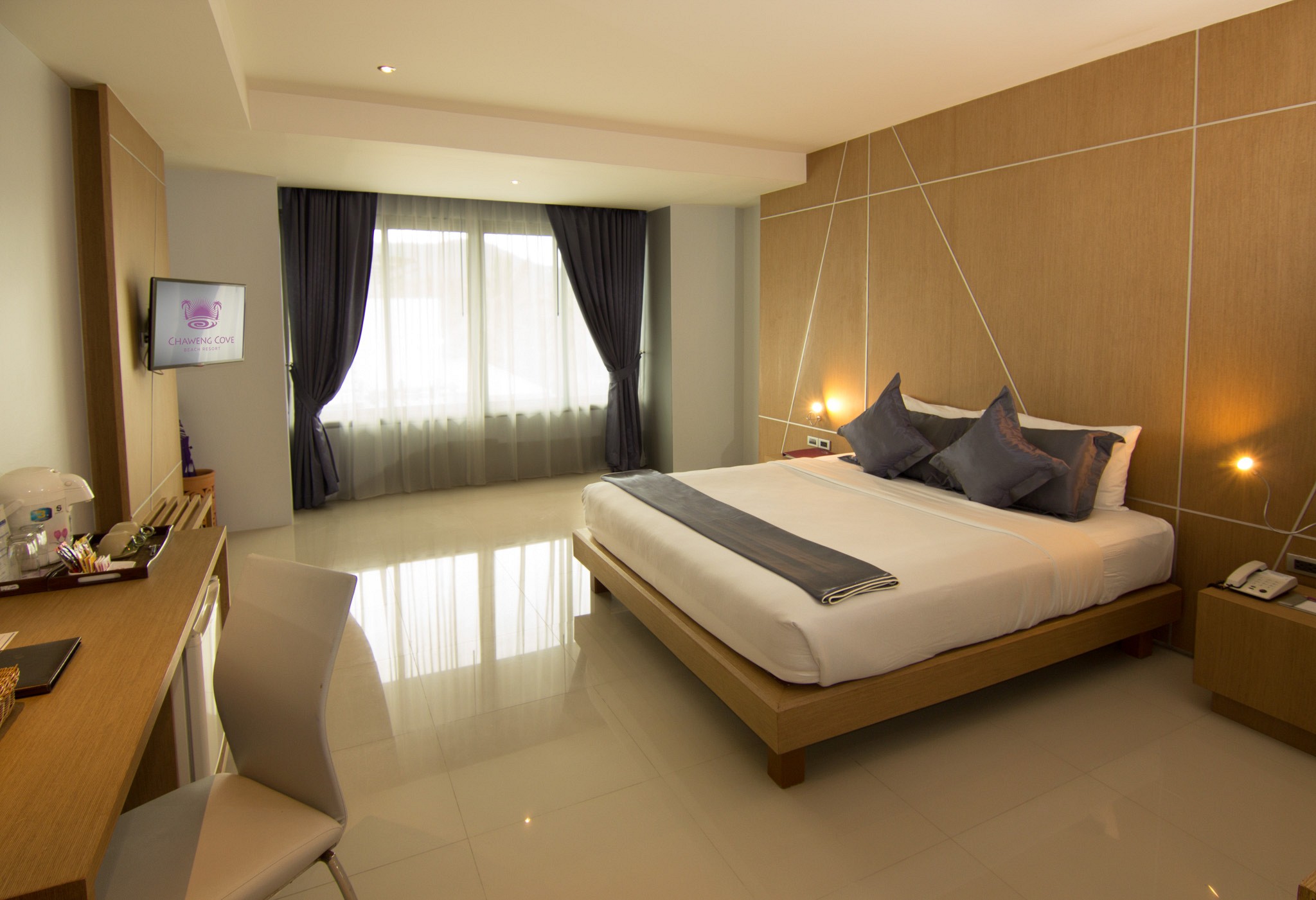 『チャウエン コーブ ビーチリゾート』宿泊。 チャウエンビーチの繁華街の南端に位置するオンザビーチリゾート♪ 繁華街の中心部まで徒歩圏内、プライベートビーチも完備。 お部屋はシンプルなつくり、広さは36平米です。