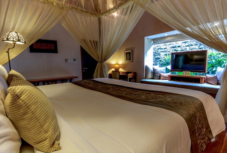 そして3つ目はトロピカルジャングルに囲まれたウブドエリアのプラマナ ワトゥ クルン リゾートです。アユン川を見下ろす崖の上にあり、自然あふれるこのリゾートはなんとウブド中心地から車で10分という利便性の良さ。美しい自然とウブドならではのダイナミックな渓谷の眺めが特徴です。特にインドネシアらしいインテリアのゆったりくつろげるリビングルームと天蓋付きのベッドルーム、プライベートプール付きのロイヤル・アユン・プールヴィラは絶景が広がる贅沢な空間となっています。