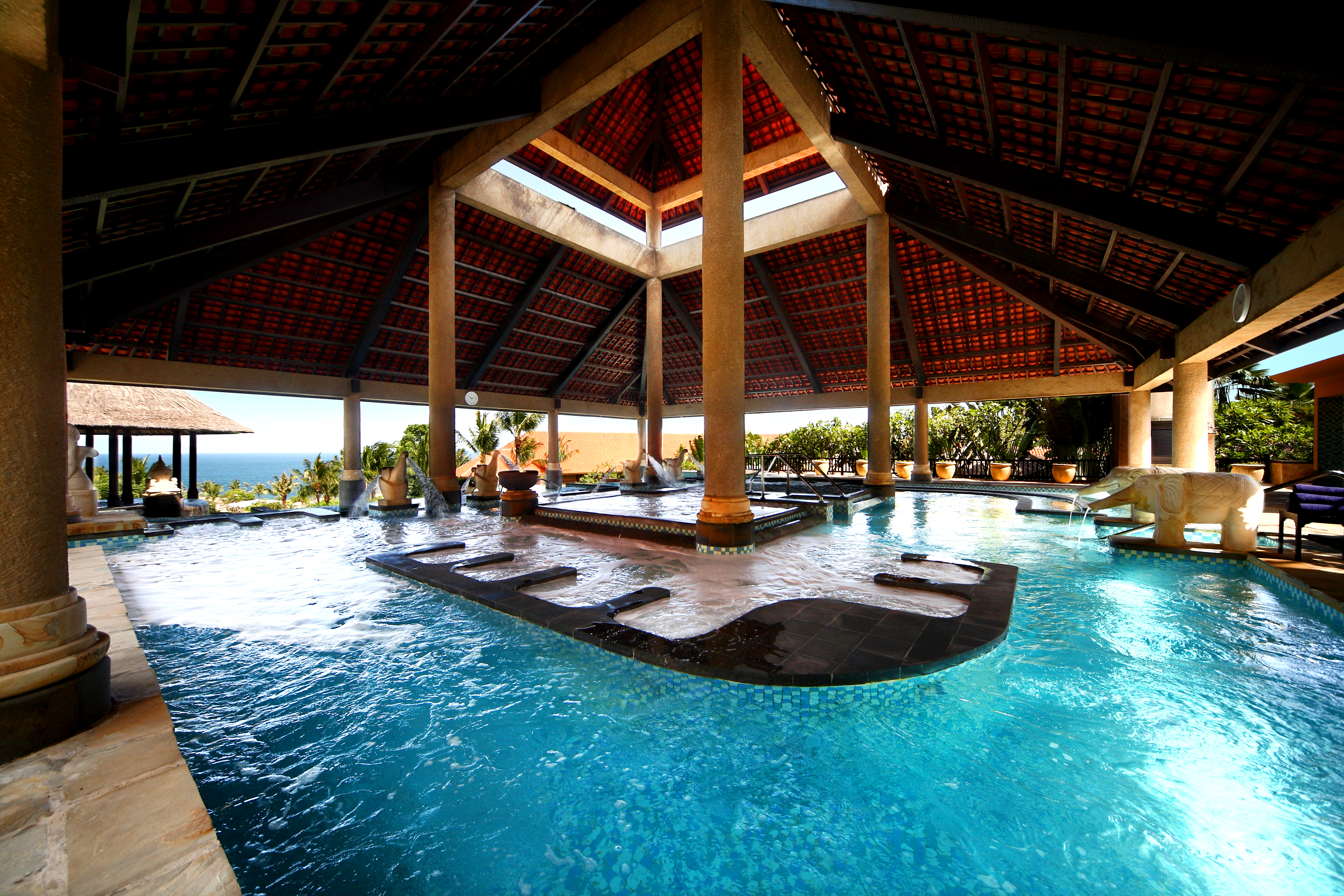 そしてバリの伝統舞踊を観賞しながらバリ料理の豪華ビュッフェディナーのお食事ができる「カンポン バリ」。敷地内にはバリの村を再現した池や水田の景色が広がり、バリの文化に触れながら、子豚の丸焼きバビグリンやバリの郷土料理が楽しめます。伝統的なバリダンス観賞とバリ独自の世界を堪能することができる「カンポン バリ」、ぜひ利用してみてくださいね。その他、アヤナとはひと味違うカフェやスパ施設、全く異なるアクティビティが用意されたキッズクラブなど、ちょっと違う雰囲気も試してみたい方にはうれしいつくりですね。