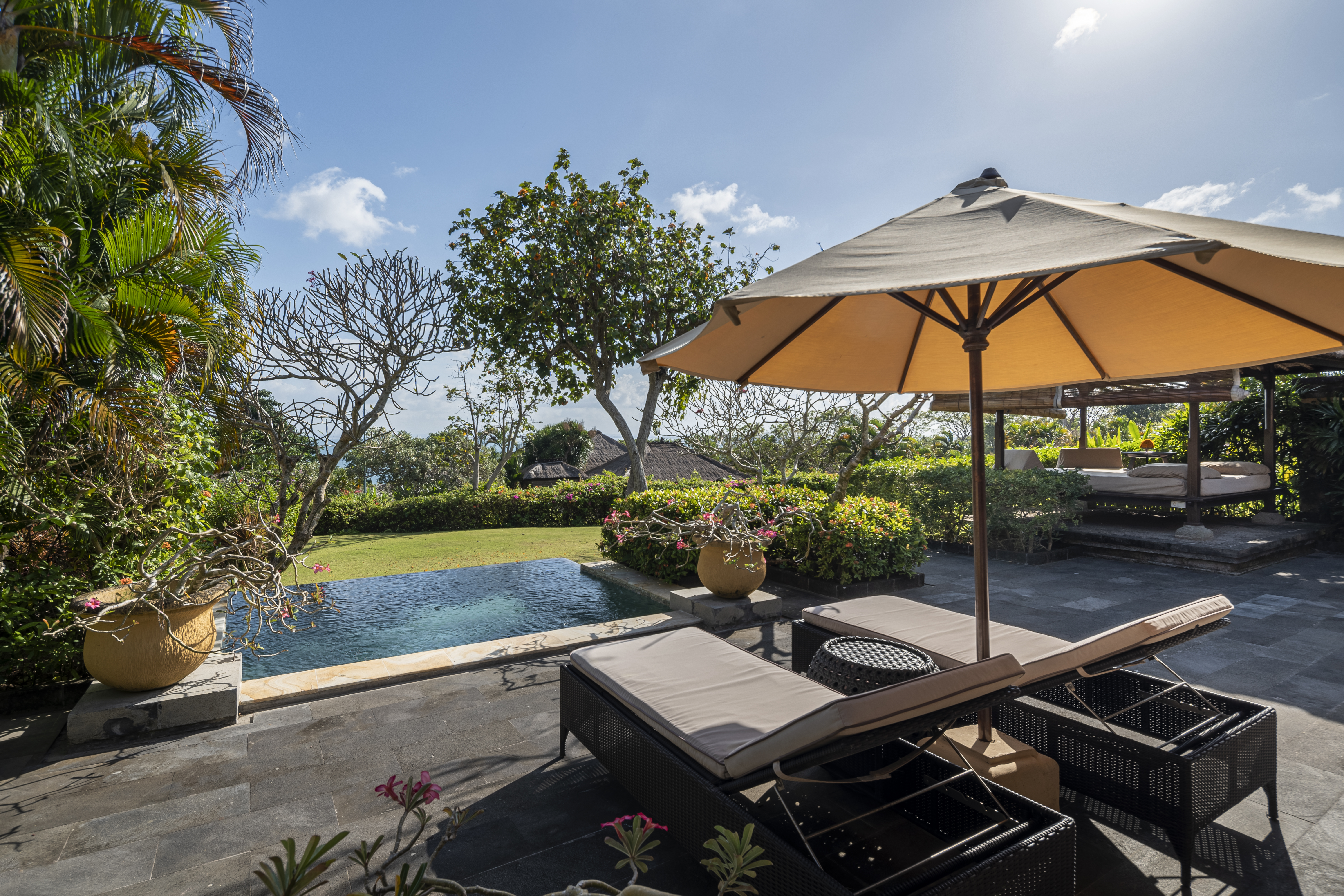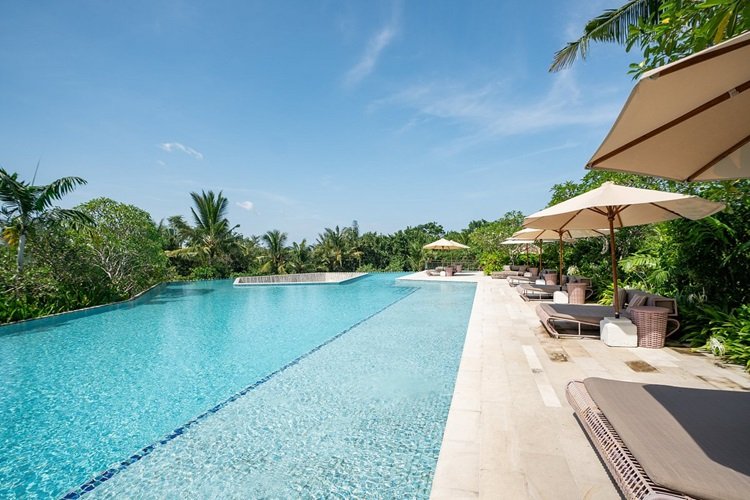 緑濃いウルワツの森や、その向こうに広がるインド洋の景色を見渡すことができ、25mのインフィニティプールも併設されています。心地よい海風を感じながらのんびりした時間を過ごすことができます。