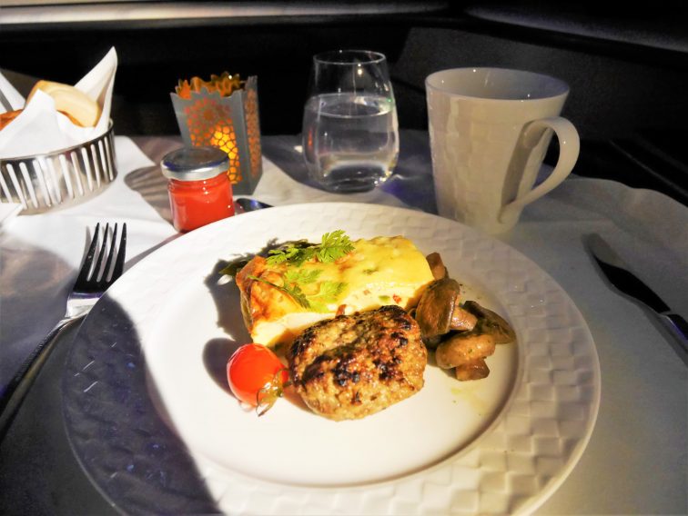 成田発ドーハ行き、カタール航空ビジネスクラスのメイン料理