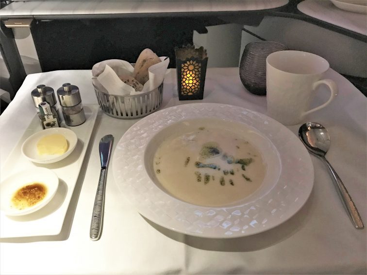 カタール航空の新ビジネスクラス「Qスイート」の機内食【成田発ドーハ行き・夕食編】