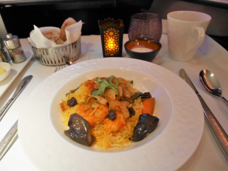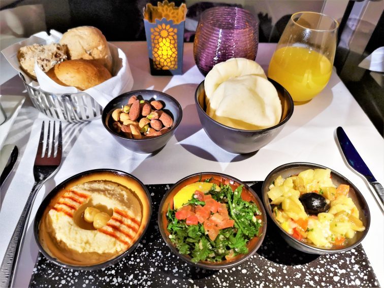 中東の産油国、カタールのフラッグキャリアに搭乗するわけですから、中東料理はオーダーしてみたいものですよね。