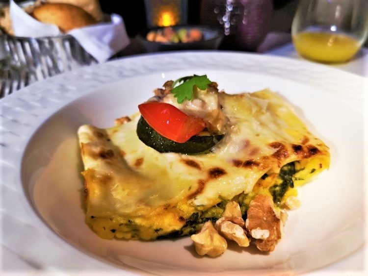 こちらはメインのアラカルトから「カボチャ、リコッタ、ほうれん草のカネロニ」。
