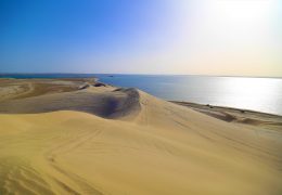 大都会ドーハの摩天楼やおしゃれな街並みは確かに素敵。でも、中近東といえばやはり広大な砂漠ですよね!ドーハの砂漠は海が隣接した珍しい砂漠。波打ち際はもはや「広すぎるビーチ?」と勘違いしそうな光景です。