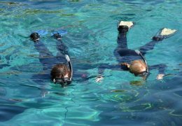 イルカの餌付けは夕方に行われます。冬の時期にイルカの餌付けをする時は、水温が下がることもあります。水着で入水する際には、ラッシュガードなどを着ておくと寒さ対策なります。
