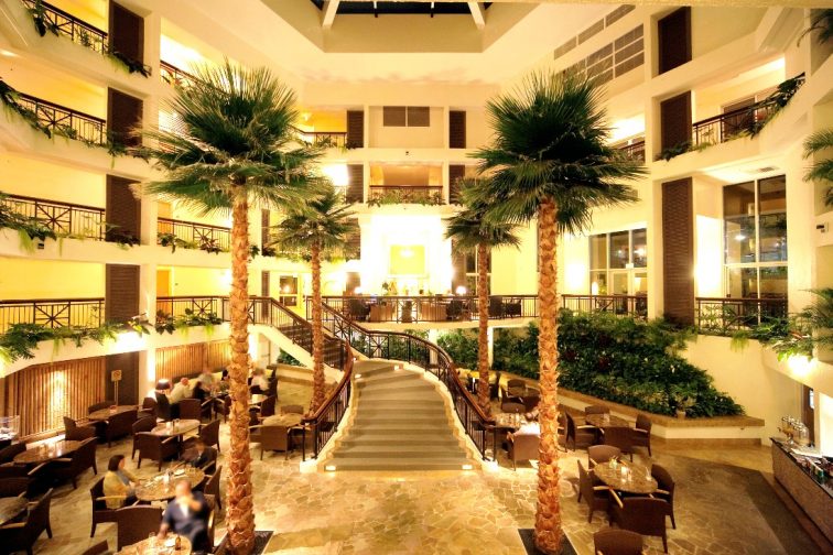 ヒルトン グアムに宿泊するとお話があれば、真っ先におすすめしたいのが「タシタワー」です。棟の中央がまるっと吹き抜けになっており、らせんに続く階段がなんともおしゃれ・・・ヤシの木や大ぶりの葉がのびのびと育っているところが南国らしくてリゾート感を満喫できます。