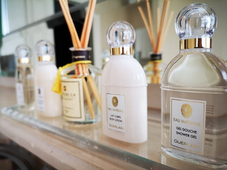 これだけの名ホテルであれば期待せざるを得ないアメニティは、さすがはパリ!ボディソープから、シャンプー、コンディショナー、ボディローションに日本でも人気のコスメブランド「ゲラン(GUERLAIN)」。これだけ高級ブランドをたっぷりと使えるバスタイムが毎回幸せだったことは言うまでもありません。