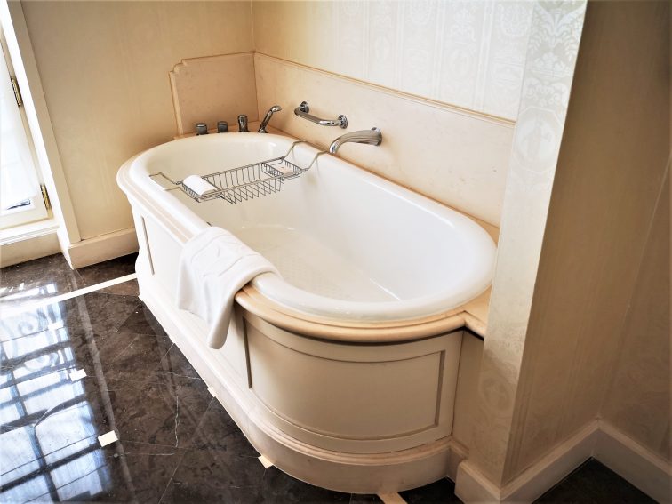 ベッドルームの隣はウォークインクローゼット。そしてその隣がバスルームという贅沢な造りの客室です。女子旅で一番大切なものは、水まわり!そう言い切って良いかもしれません。最新ホテルと比較すると、築200年近いお屋敷ホテルは設備面で我慢しなくてはならないこともありそう・・・と思っていましたが、とんでもない!「こんなバスルームでバスタイムを過ごしたい」という憧れを持っている女子は圧倒的に多いはず!