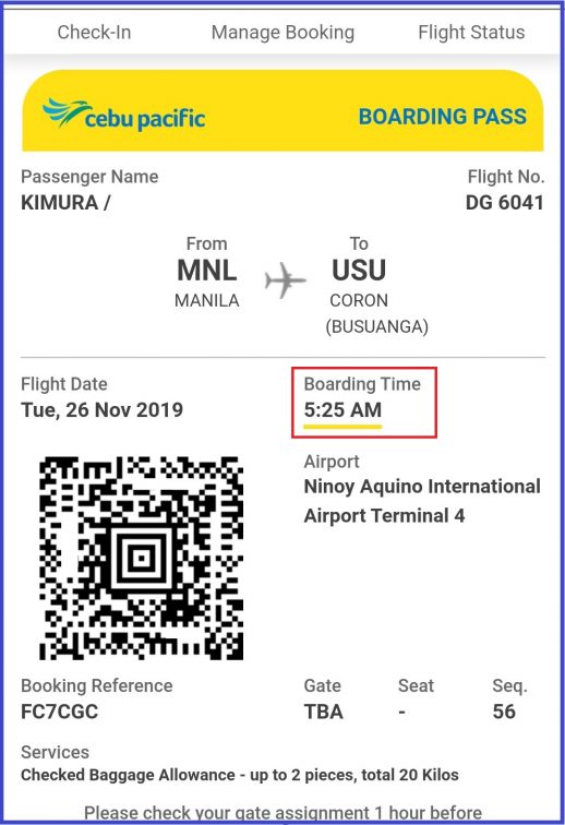 ※マニラ空港では国内線、国際線ともに搭乗券の印刷が必要になります。