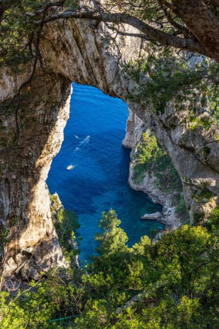 海岸沿いには波の浸食で削られた天然のアーチや洞窟がたくさん見られるカプリ島ですが、海から約200mも上がった場所にも天然のアーチがあります。長い年月をかけ、風によって作られた自然の造形は鳥肌ものの感動。