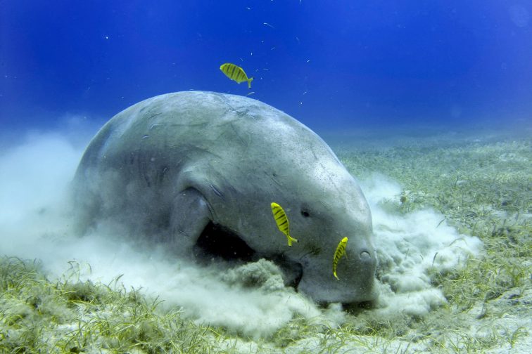 繰り返し、ジュゴンをばっちり写真におさめるならダイビングがおすすめです。海底で藻を食べている最中は砂ぼこりも立つので、水面からではどうしても見づらい距離になってしまいます。