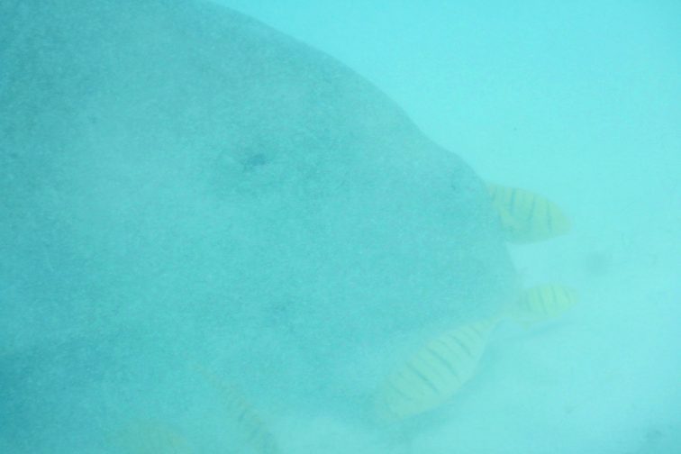とはいえ、シュノーケリングでも水面まで上がってきたジュゴンをしっかり目にとらえることができました。ザパーンと音を立てて出てきた瞬間、大迫力の丸々とした巨体が!体長は3mくらいで、ぽっちゃりとした人がマーメイドの尾びれを付けて泳いでいるように見えました(笑)。ボディも顔も想像通りの癒し系で大満足です。