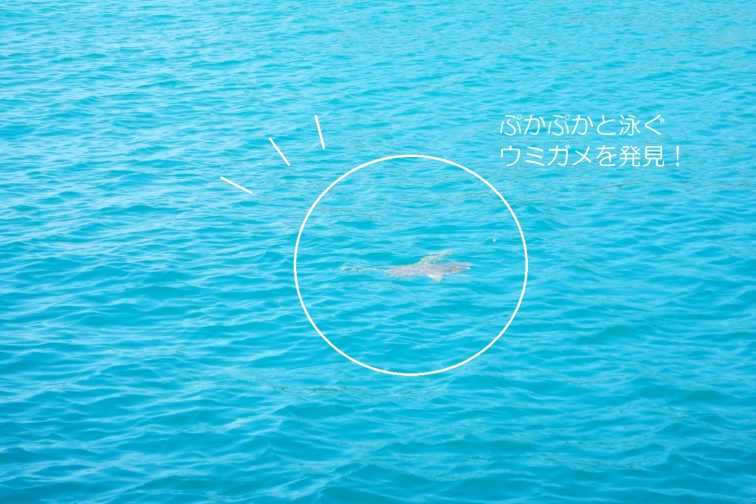 最後に訪れたシュノーケリングスポットでは、ウミガメが近くに来てくれました!1、2分くらいじっと船の方を見つめてぷかぷかと泳いでいて、息継ぎでぴょこっと顔を出すのがたまらなくかわいかったです。