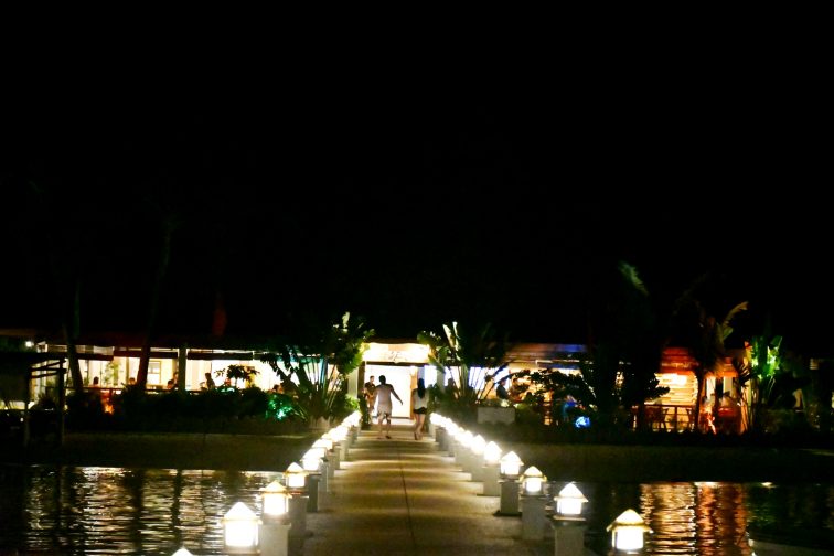 夜は本当に真っ暗で、海を照らす桟橋のライトとホテルの明かりが幻想的でした。お腹におつまみが入るスペースも無く、1杯のカクテルをちびちび飲みながらただただおしゃべりにふける時間♪雰囲気のあるスポットでしんみり友人と語り合えて良い思い出になりました。