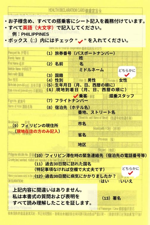 保管してください。フィリピン到着時にフィリピン検疫局への提示が必要となりますが、