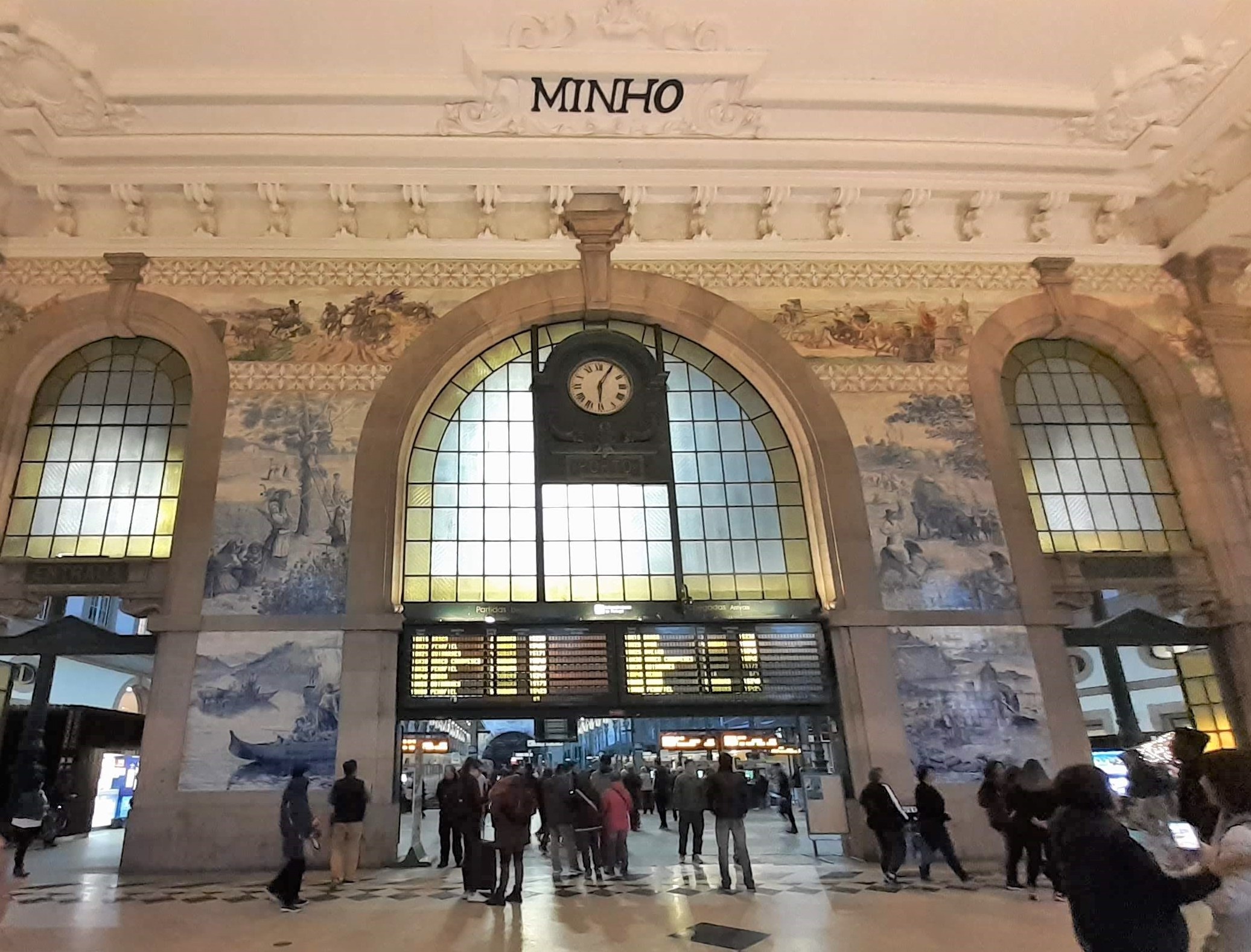 「Minho」は「みんほー」ではなく(笑)「ミーニョ」と読むのだとか。反対側の「DOVRO」は「どぶろー」ではなく「ドウロ川」を示しているのだそうです。 Minhoは北部と言う意味で、この駅は北部ローカル線の始発駅のため、表示してあり、入り口のDOVROはドウロ川の方向を示しています。