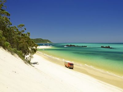 グレートバリアリーフの最南端付近にあるフレーザー島。全長約120kmにもおよぶ縦長の島で、砂の島としては世界最大と言われています。1992年にはフレーザー島自体が世界自然遺産に登録されました。