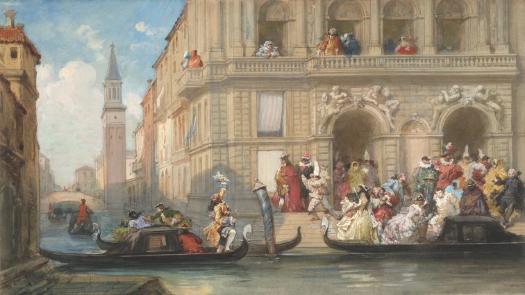 ベネチア共和国が栄華を誇った18世紀のルネサンス期に、カーニバルも最高潮の盛り上がりを見せます。このカーニバルの面白さは、この期間だけは貴族も平民も仮面をつけて身分に関係なく盛り上がる「平等」さ。そしてその美しく楽しいカーニバルの様子は世界的に知れ渡っていきます。