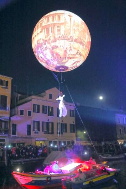 運河の上で行われ、周囲の数百年の歴史を誇る建物がプロジェクションマッピングに照らされ、いつもと全く異なる雰囲気に!光と音、そして運河の水が織りなす素晴らしいパフォーマンスと、ベネチアを象徴するゴンドラの姿は、オープニングセレモニーを見ただけで「ああ、ベネチアに来てよかった!」と思えるはずです。