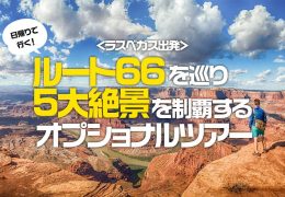 弊社のツアーでは、グランドキャニオン国立公園内の散策はもちろんのこと、廃線になって今もファンが多いルート66沿いの街を3か所巡る観光プランも含まれています。個人旅行でルート66の街を巡るにはレンタカーを借りる必要がありますが、ツアーならそれも一切不要!気軽に有名な街の散策を楽しめますよ。
