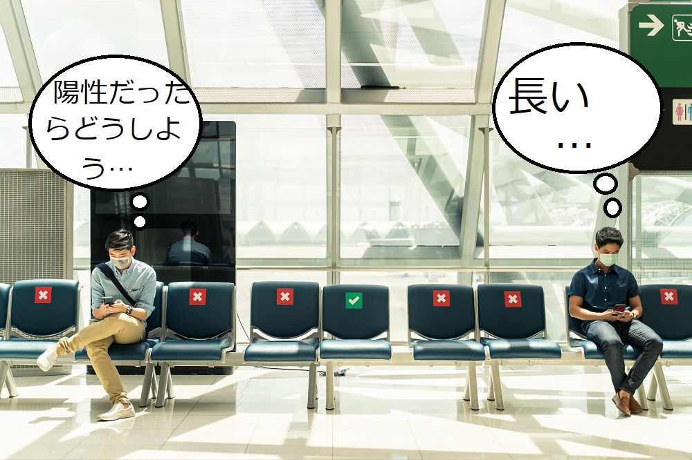 なぜ待ち時間が短くなったのかと言うと、これからお話しする、水際対策であるPCR検査が鼻や咽頭をぬぐって細胞を採取する検査から、唾液から検査をするものに変わったことに大きな勝因があります。