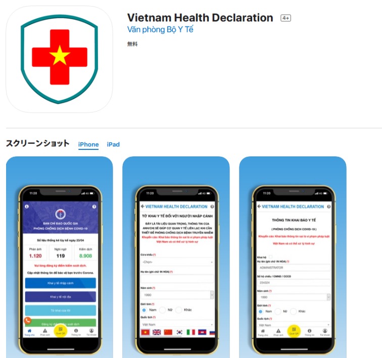 ベトナム入国時にはベトナム保健省が提出を求めている健康申告書を事前に準備する必要があります。健康申告書はWEBで配布されており、また専用アプリもアンドロイドまたはiosで下記サイトよりダウンロード可能です。