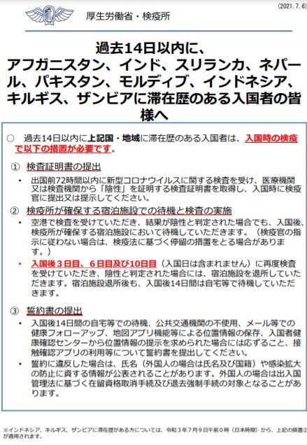 これらの国に渡航する方や旅行を検討している方は、渡航国の大使館や、搭乗する航空会社に確認しましょう。