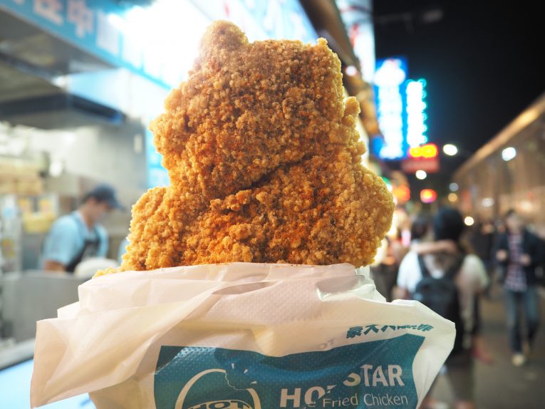ここでは、鶏排(ジーパイ)とよばれる台湾のB級グルメをぜひ食べてみてください。鶏むね肉を丸まる使ったスパイシーな台湾式唐揚げのようなものです。屋台でその場であげてもらうので、サックサクの食感とジューシーな味わいを楽しむことできます。