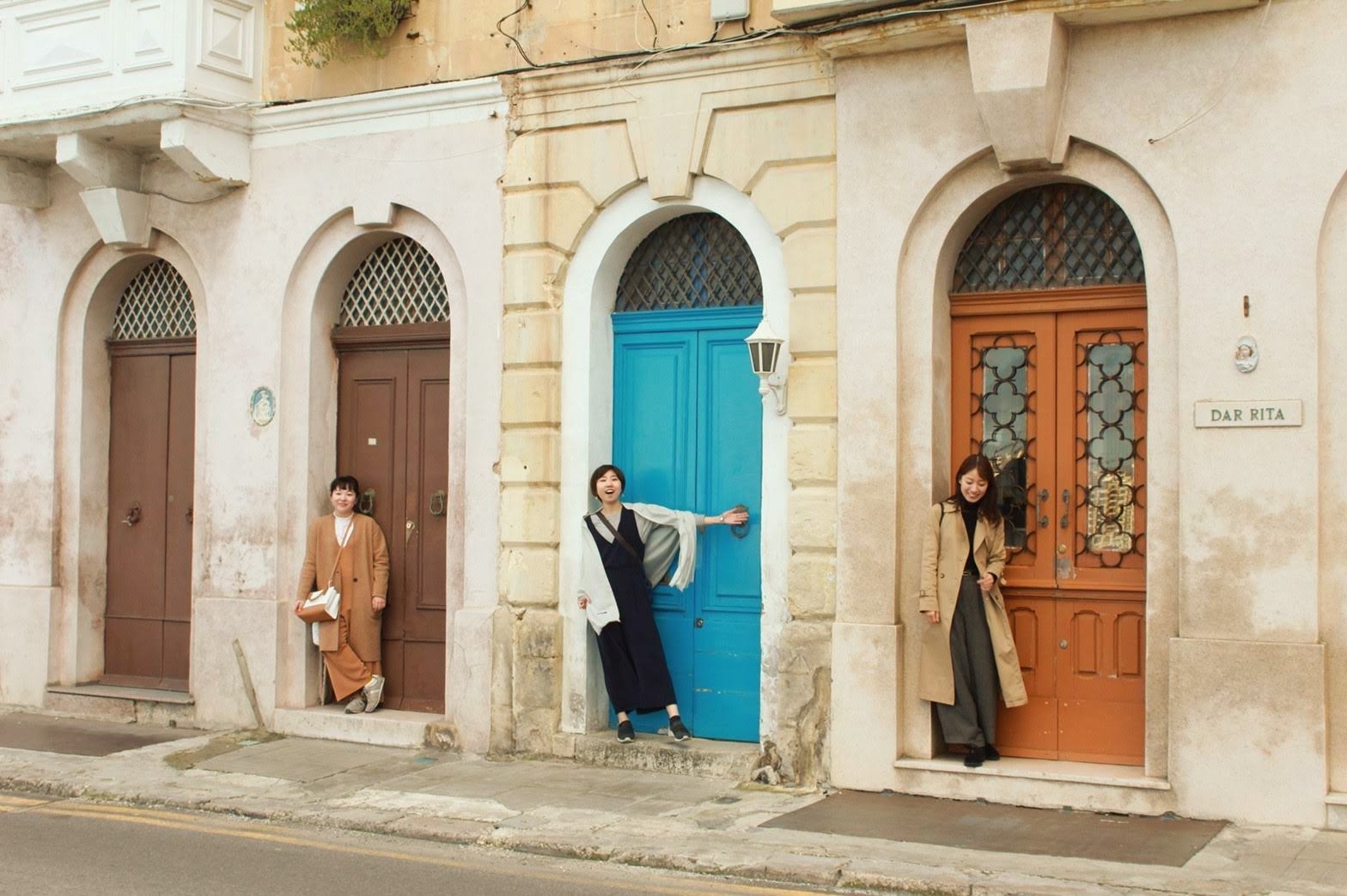 マルタの特徴的なはちみつ色の壁とカラフルなドアがかわいい!