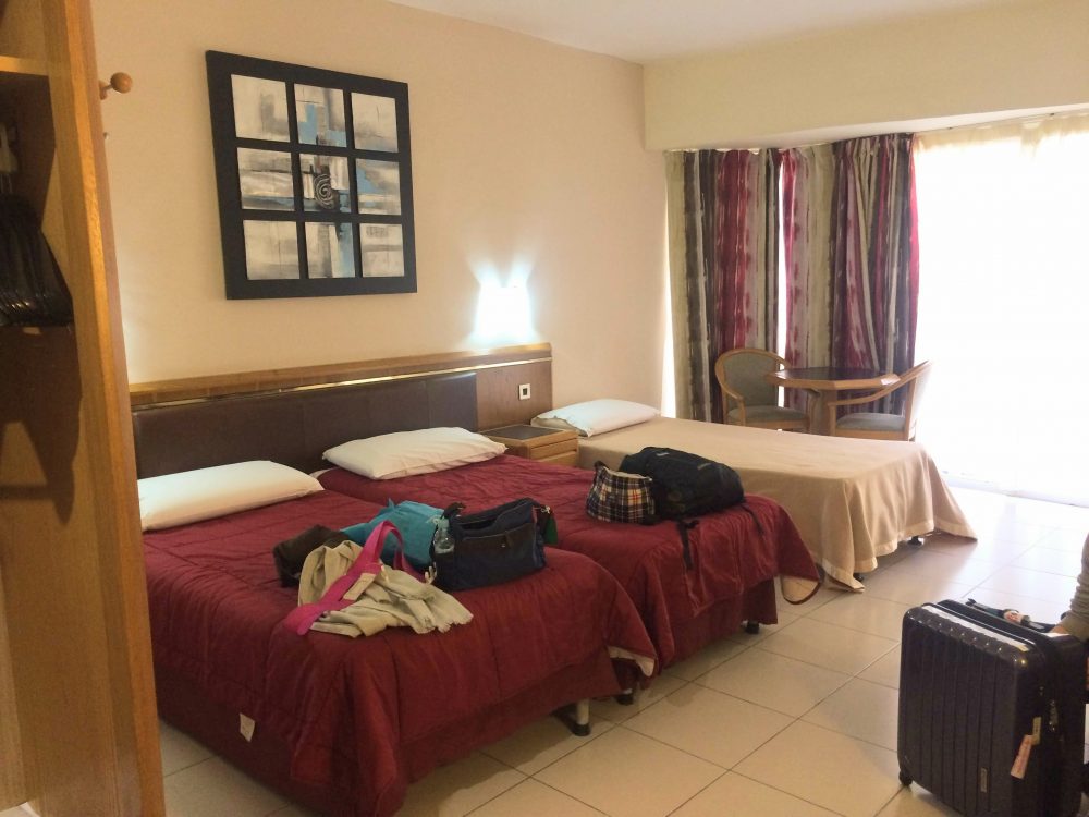 部屋は3名1室を2部屋とりました。エキストラベッドを入れて3名部屋になっています。