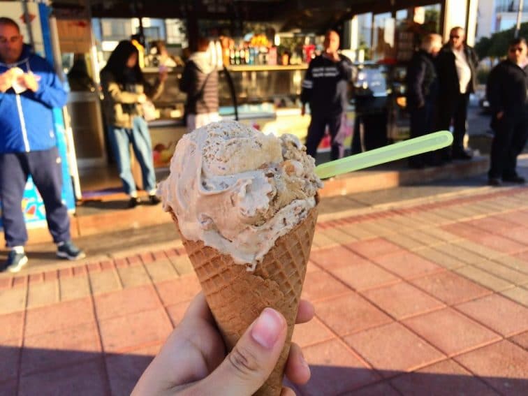 朝のジェラート!お店には早起きのおじさんたちが集まっています…