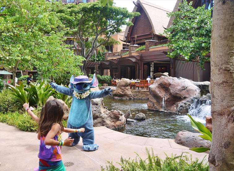 キャラクター・グリーティングは、リゾート内のプールエリアや芝生が広がるハラヴァイ・ローンで行われています。アウラニ・リゾートでまず絶対に会いたいのは、映画の舞台がまさにハワイであるスティッチ。レイを首にかけていたりと南国ムード満載です!同じく南国が舞台となっている映画『モアナと伝説の海』のモアナともグリーティングができます!物語から飛び出してきたかのようなキュートなモアナと写真撮影を楽しみましょう!