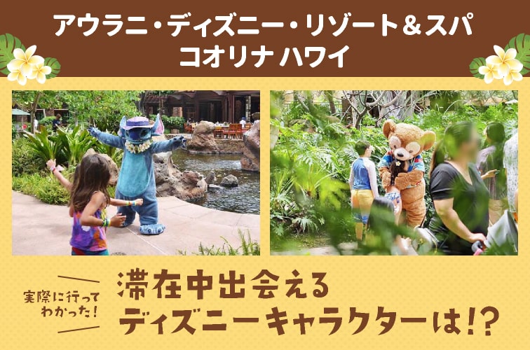 ハワイで大好きなディズニーキャラクターと過ごせるという、ディズニーファンにとって夢のような楽園「アウラニ・ディズニー・リゾート&スパ コオリナ ハワイ」。そんなアウラニ・リゾートでの楽しみのひとつがキャラクター・グリーティング!どんなキャラクターに会えるの?宿泊者しかグリーティングできないの?などの気になる疑問に、実際に滞在してきたときの感想も含めてご紹介します♪