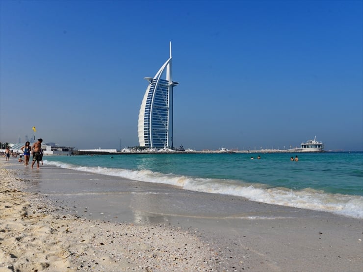 新シンボル「ブルジュハリファ」が完成するまで、「俺がドバイの顔やで」と、世界中の賞賛を浴びてきた方です。という訳で・・・ドバイの世界一を巡るためにさっそく行ってみましたが、バージ・アル・アラブ内には宿泊者、レストラン利用者しか入れないため、庶民の筆者はバージ・アル・アラブが見えるビーチでパチり。