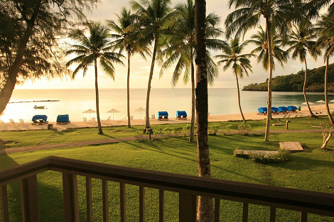 客室からは、庭の先に広がるビーチを見ることができます。