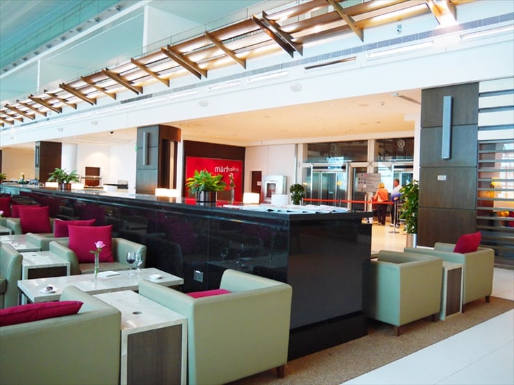 エミレーツ航空の会員であればエコノミークラスでも約10,000円で利用可能ですが、少し高額です。もう少し手ごろに利用したい場合は、約5,000円で使える「マルハバラウンジ」もあり、こちらでもビュッフェやお酒を楽しめます。