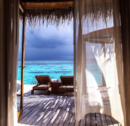 水上コテージの電気を消してテラスのビーチチェアに寝転びましょう。無音で澄んだ空気の中に輝く、美しい星々がとても素敵です。