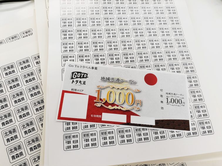 9月某日、某旅行会社で、これからお客様に送付するという地域共通クーポンを見せていただきました。まだ作業前のまっさらな状態です。