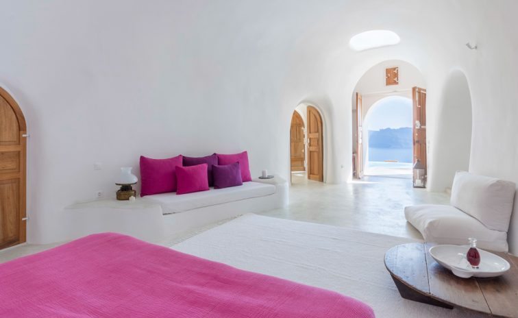 また、サントリーニ島にせっかく行くのであれば、白壁の洞窟のような造りのホテルや、同じく白壁の海に面したプールのあるラグジュアリーホテルでのんびりするのがおすすめ。