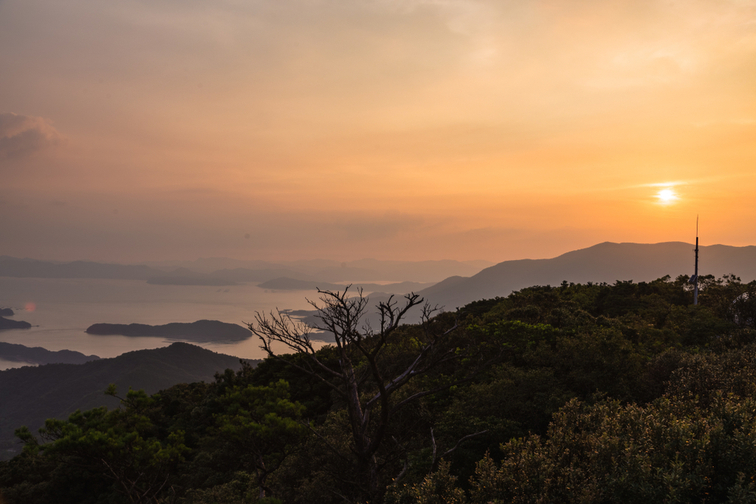 「高舞登山」は、天草諸島の景色を一望できる人気観光地です。標高は117mで、国指定文化財の名勝となっています。写真を撮りたいときは、特に夕方の時間帯がおすすめ。「高舞登山」からの夕陽の眺めは、「日本の夕陽100選」に選ばれるほど絶景です。茜色に染まる山と海が見える山頂は、最高のインスタ映えスポット。山頂の公園には桜が植えられているので、春には桜の写真を撮ることも可能です。
